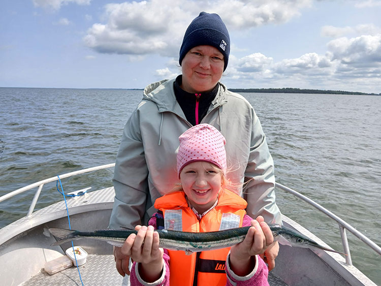 Es war eine schöne Tour bei tollem Wetter. Wir haben zur Freude der Familie mehrere verschiedene Fischarten bekommen. Zum ersten mal haben sie auch mit großer Freude Hornfische geangelt. Die grünen Gräten erleichtern das Essen des schmackhaften Fisches enorm.