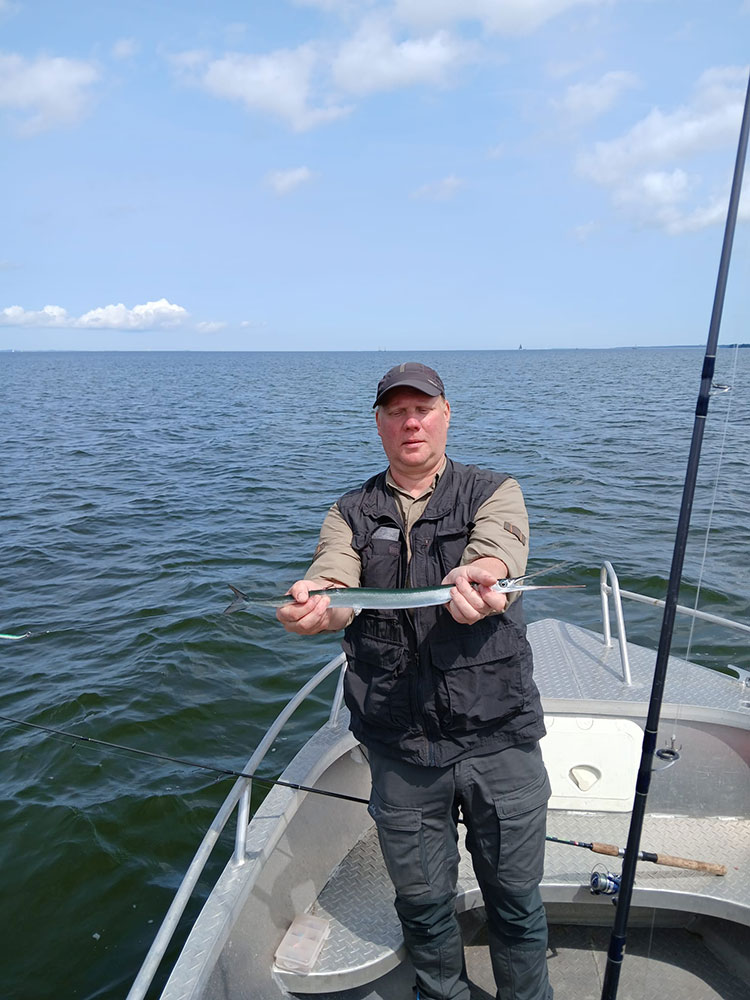 Ich war heute Abend bei fantastischen Wetter mit zwei älteren Herren auf Hornfisch. Wir haben schöne große Fische auf Blinker bekommen. Die Saison begann in diesem Jahr ca. zwei Wochen früher als sonst und ist voll im Gange.
